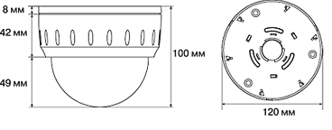 Цветная купольная видеокамера высокого разрешения со встроенным вариофокальным объективом.